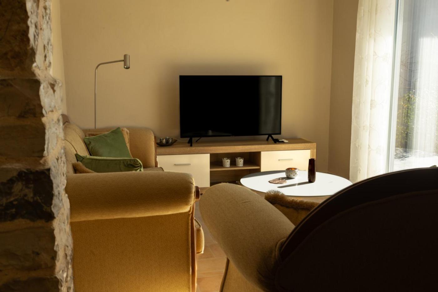 One-Bedroom Apartment. The air-conditioned apartment has 1 bedroom, 1 bathroom and a kitchen. The apartments kitchen is available for cooking and storing food. Boasting a terrace with garden views, this apartment also offers a washing machine and a flat-screen TV. The unit has 11 beds.